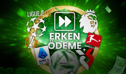 Süper Lig, Premier League, La Liga, Serie A, Bundesliga ve Ligue 1’in yanı sıra Şampiyonlar Ligi ve Avrupa Ligi’nde bahis oynadığın takım iki farkla öne geçtiği an Erken Ödeme al!
